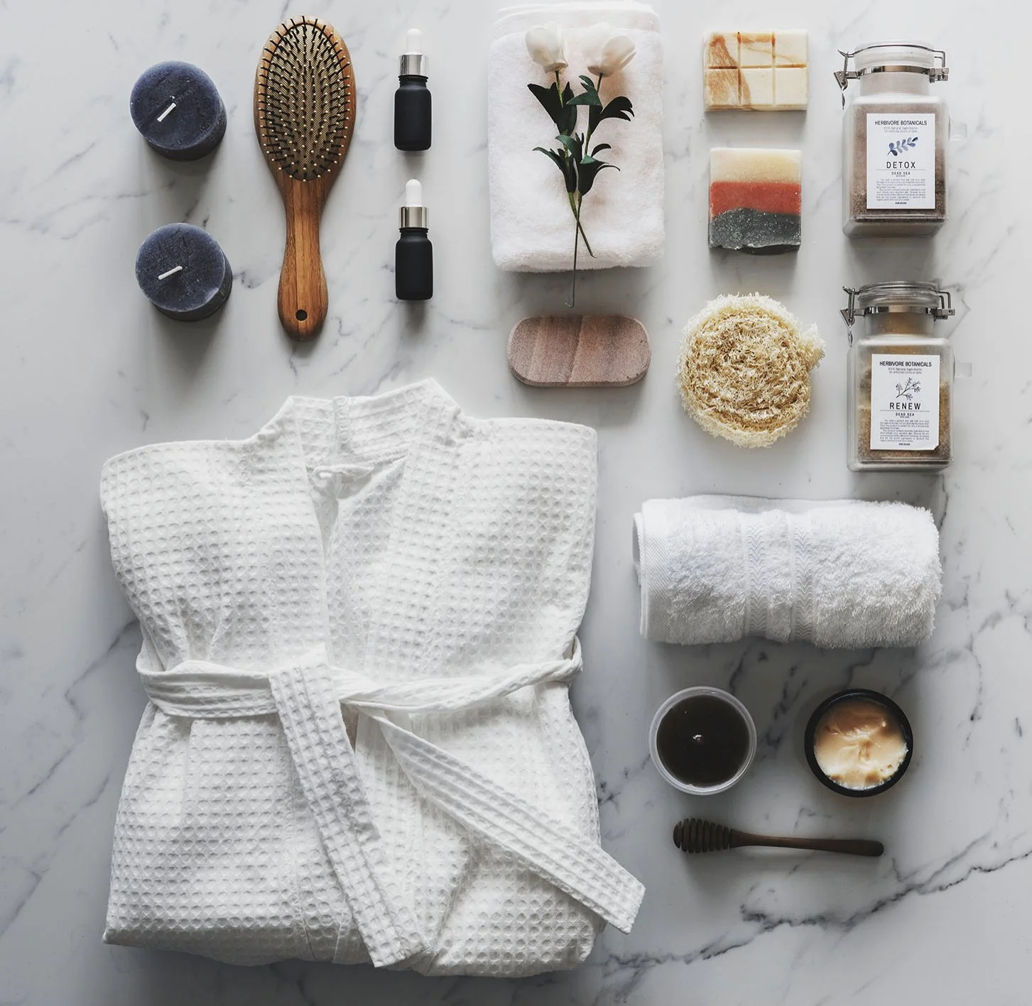 6. Next, drench your body in a luxurious body oil or lotion and put on your cozy robe or loungewear.